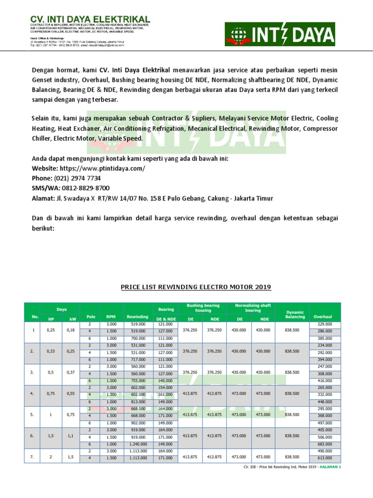 Contoh surat penawaran perbaikan genset.